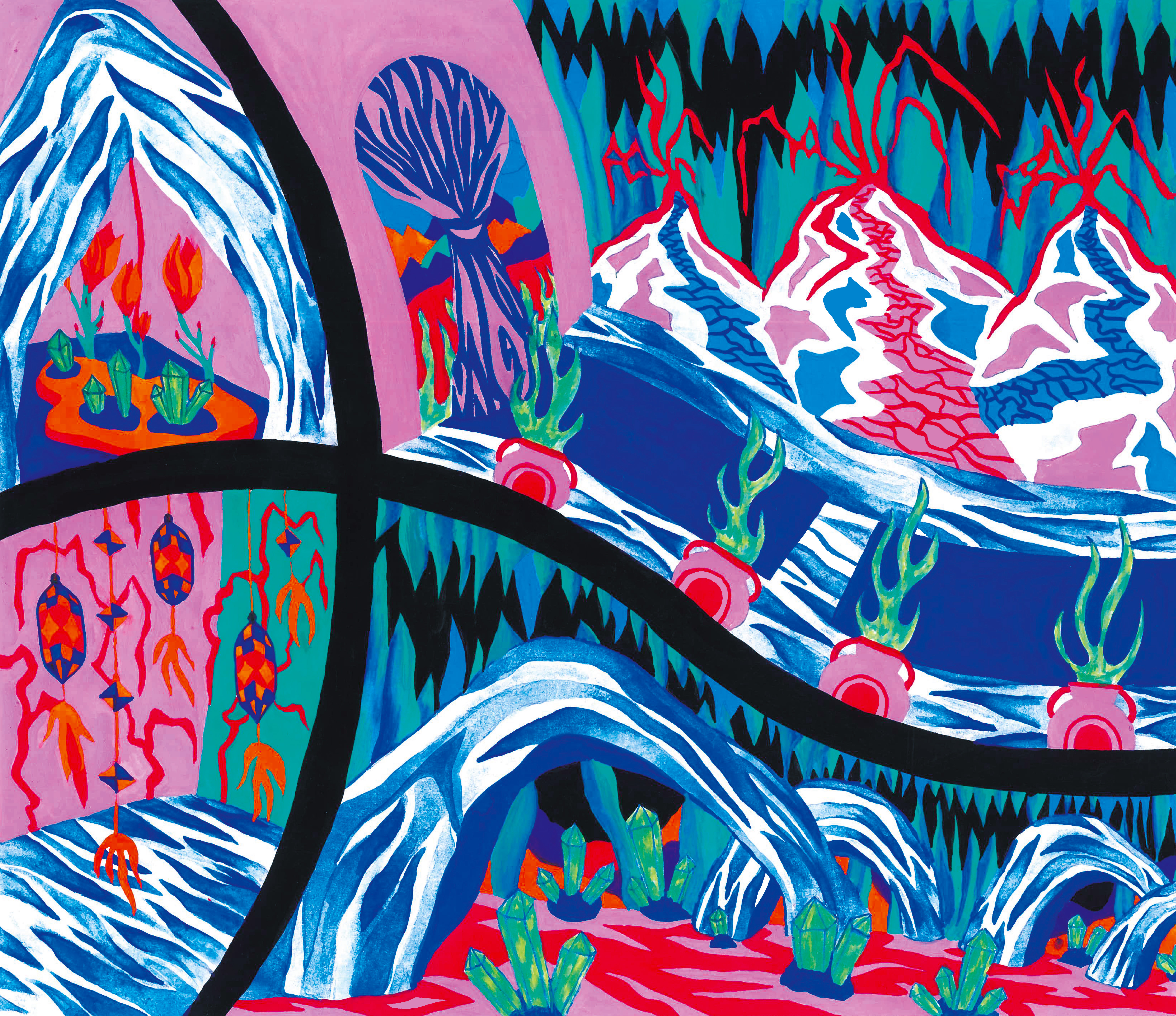Peinture à la gouache et design graphique pour la saison 2024-2025 du cinéma L’UNIVERS (Lille).